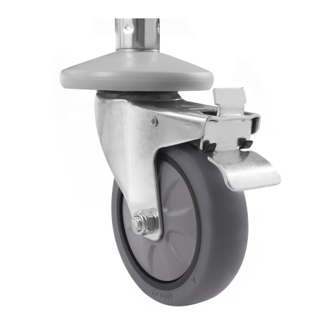 pro přenášení vysokých jídel. Kromě toho byla vybavena gumovým kolem o průměru 100 mm, který otáčí o 360DEG. Ze spodní části jsou matné, které eliminují vibrace a zvuk zvuk.