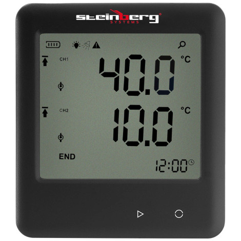 10030586Rekordér teploty Značka Steinberg bude použit v průmyslových podnicích, sklenících, obchodech, skladech, kancelářích atd. Je také vhodný pro zkoumání podmínek mimo prostory (třída ochrany