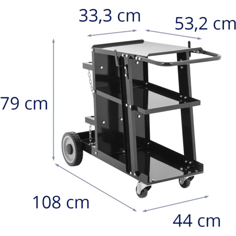 Tři úrovně Poskytování dostatek místa pro skladování věcí potřebných pro svařování. Horní police je mírně nakloněná a nabízí prostor s rozměry