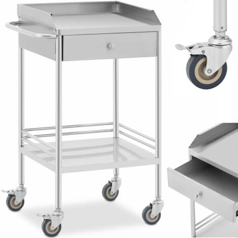 10030866Značkové laboratorní vozík Steinberg Systems Bude to fungovat v kosmetických salonech, tetování, léčebných kancelářích nebo lázních. Trolejbus má dvě police. Rám na třech stran chrání položky před náhodným uklouznutím. Zásuvka umožňuje uložit nejatraktivnější příslušenství. 4 kola poskytují vozík mobility a dvě brzdy nezbytná stabilita.