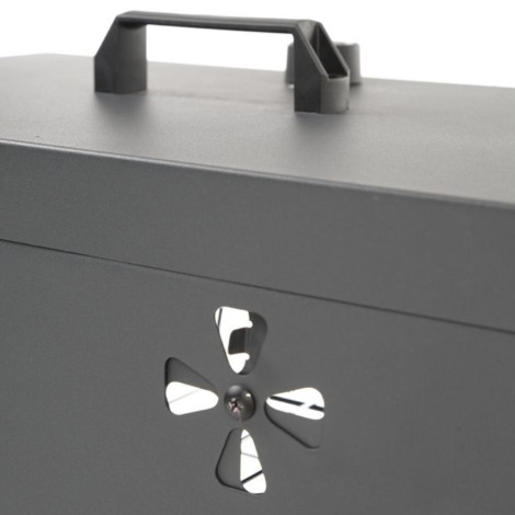 Dvojité izolované dveře uzavřené na magnetu a teplotní regulaci termostatu. Kromě toho může uživatel ovládat teplotu pro kouření pomocí teploměru zabudovaného do dveří.