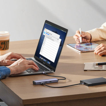 Produktegenskaber: - - Udvider computerens funktioner: Konverterer en USB-C-port i 3 USB-A 3.0-porte, en HDMI, RJ45 og USB-C PD. Portudvidelse muliggør samtidig tilslutning af flere enheder,