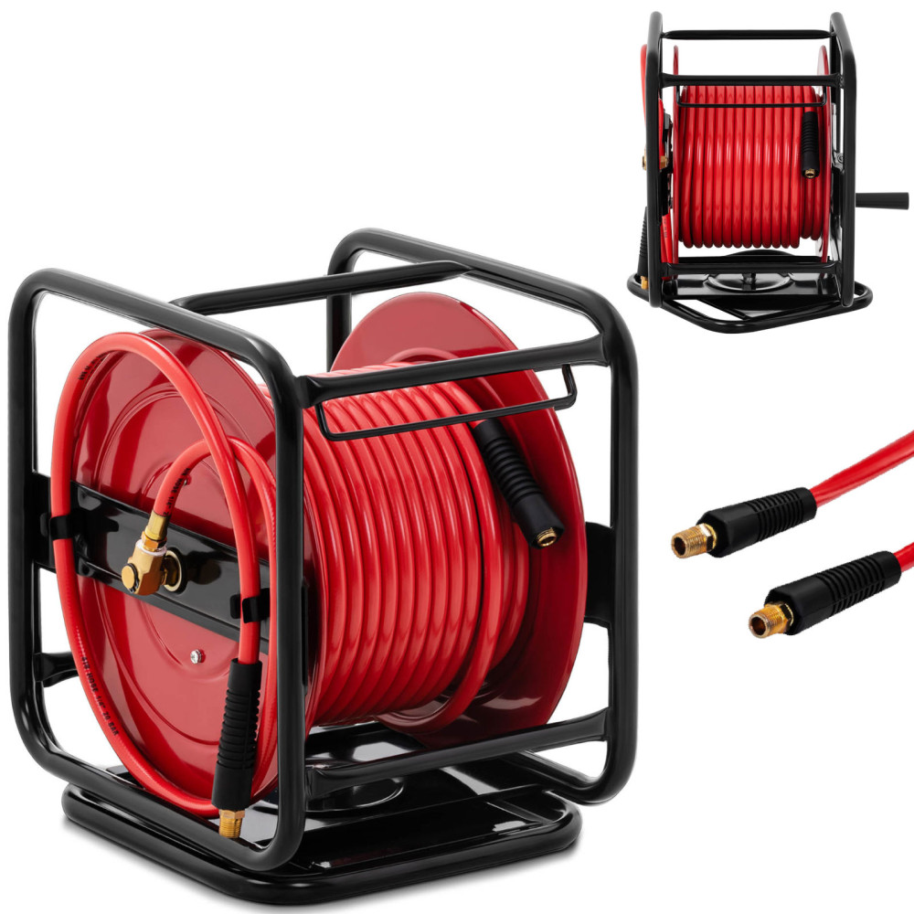 30 m Det muliggør frihed under drift. Retractoren giver dig mulighed for hurtigt at skjule slangen, efter at opgaven er afsluttet og vedligeholdt. Tromlen roterer med 360deg. Huset blev lavet af
