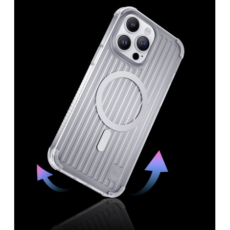 1021855Gennemsigtig sag til smartphone, Modellen med et mønster i lodrette bælter er ikke slående, og bliver en diskret tilføjelse. Effektivt beskytter enheden mod skade, især på kanterne, hvor du vil finde yderligere forstærkning. Et elegant mønster med udsat Magsafe vil arbejde i enhver situation. Dækslet er matchet til
