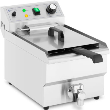 50 - 190DEG C, som giver dig mulighed for at indstille temperaturen ideel til hvert produkt. Ergonomisk design påvirker bekvemmeligheden af brugen. Kold zone forhindrer resterende resterende, som strækker sig olieviden og ikke forkæler smagen af retter. Afløb pik giver dig mulighed for nemt at fange frytrien. Fryseren var lavet af fast og slidstærkt rustfrit stål.