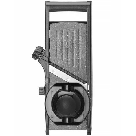 Skære tykkelsen kan justeres med en knap fra 0,5 mm til 9 mm og vælge dens type: skiver eller indlæg. Mandolin Hendi Det adskiller også PTFE-slagtelægningen, hvorefter stykker af grøntsager og frugter let glider, hvilket letter skæring. Dens kompakte størrelser gør det perfekt tjekke ikke kun i et professionelt, men hjemme køkken.