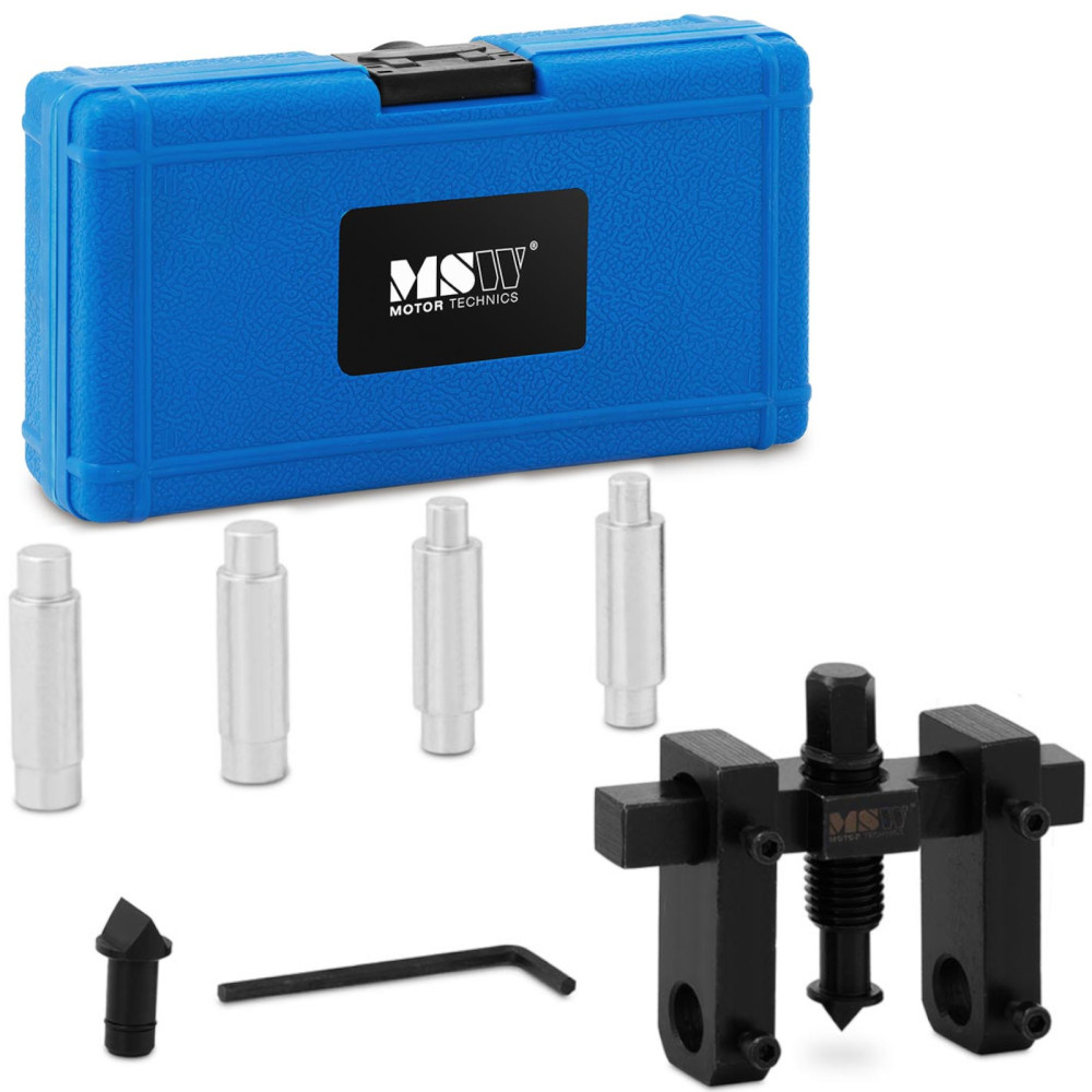 MSW-Sps-17 Velegnet til en bred vifte af køretøjer: Audi, BMW, Citroën, Ford, Peugeot, Renault, Škoda, VW. Funktionelt udstyr er designet til PIAST (demontering og montering af støddæmperen fra crossover) og terminaler af terminaler på de nedre kugleledninger. Et permanent værktøj er præget af en lang levetid. Separatoren er udstyret med en praktisk kuffert til overførsel og opbevaring.