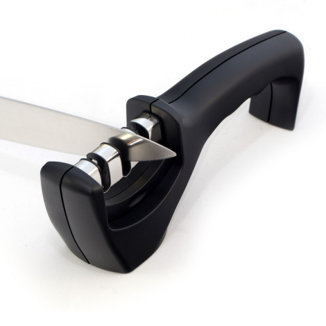 - har 3 par skarphed sten, der muliggør slibning af alle typer knive, også keramiske knive