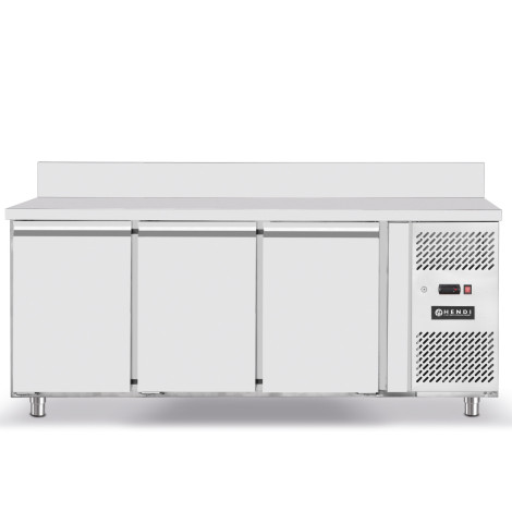 Producent nummer: 232057 Kølebord fra Profi Line Brand Line Hendi, 3 Dør udstyret med sideenhed. Produktegenskaber:- Indre og eksterne boliger fra højkvalitets rustfrit stål (bageste ekstern galde-galvaniseret stålmur) - Tvunget køling, støvfilter - 60 mm isoleringstykkelse (Materiale: C5H10) - Digital display, elektronisk termostat - Embrapo køleaggregat - Automatisk fordampning af kondenser - Klimaklasse: 5 - Sømløs enheds drift til omgivelsestemperatur + 43Deg C - Selvlukkende dør - Praktisk profileret døråbningshåndtag - 4 justerbare rustfrit stålben - RANT 40 mm - Kompressor: EGAS100HLR med 1/3 km - I sættet efter 1 hylde på døren 330x545 mm med en maksimal belastningskapacitet på ca. 40 kg hver (med en jævn belastning af hylder) - Kølefaktor: R290A (130 g) - Kammerdimensioner: 1257x570x (H) 580 mm - Kammerkapacitet: 420 l - Gennemsnitligt daglig elforbrug: 1,73 kW - Vægt på 120 kg Parametre: - Eksterne dimensioner: 1795x700x (h) 850mm - POWER: 300W - Spænding: 230v - Temperatur: -2 / + 8Deg C - kammerdimensioner 1257x570x (h) 580 mm - kammerkapacitet 420 l - Vægt: 120 kg Inkluderet: - Kølebord - x2 hylde - En erklæring
