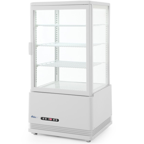 Producent nummer: Hendi 233634 Kølet websted i hvid Produktegenskaber: - Dobbeltglaset med en let åbnet vingedøre - Airkanal uden for glasset for at fjerne og forhindre vandkrævningskondensering - Bolig lavet af malet rustfrit stål - Indvendig belysning i loftet - Drejelige stålhylder, PVC-belagt - Digital display, elektronisk termostat - Køling tvunget med automatisk afrimning - Temperaturområde: 2 til 6˚c - Kølefaktor: R600a - Klimaklasse: n (+ 16deg C - 32Deg C) - Udstyret med 3 hylder Parametre: - Kapacitet i L: 68 - Dimensioner i mm: 452x406x (H) 891 - Beskrivelse / Karakteristika: Hvid - POWER (W): 170 - Spænding (V): 230 Leveringsomfang: - Justerbart kølet websted - En erklæring
