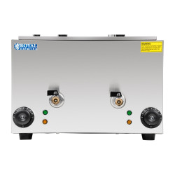 Gjorde udelukkende af rustfrit stål, har to separate kamre med vandhaner til dræning af vand og separat temperaturstyring. Takket være denne løsning kan du også forberede retter med forskellige smagsstoffer og et kammer til at lave mad og den anden med en anden temperatur til opvarmning af klar retter.