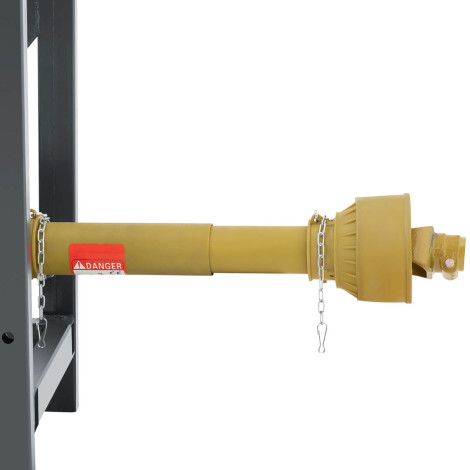 Strømforsyningsaksel med strømmodtagelse tilsluttet en 15-28 HP traktor.