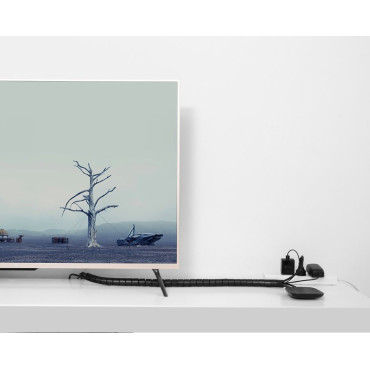 1017637En fleksibel kabelmaske, der er designet til at organisere de ledninger, der er tilsluttet forskellige typer hardware, computere, tv, hi-fi-tårne eller andre, som er placeret på kontoret, hjem, butik eller værksted.