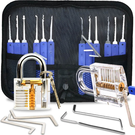 15-element værktøjssæt, som vil fungere perfekt til begyndere og beskæftige sig med låsesmed hver dag. Det muliggør praktisk at lære at manipulere låsesmekanismerne og hængelås uden at beskadige dem.