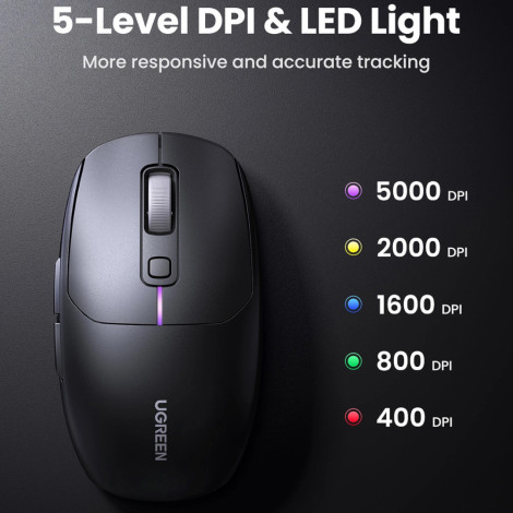 1024618Eine Computermaus Ugreen Mu103 Es kombiniert fortschrittliche Technologien mit Ergonomie. Es bietet den ganzen Tag über einen Komfort, der Zuverlässigkeit und Präzision. Dank der langen Akkulaufzeit ist die Möglichkeit, auf drei Arten und eine breite Mauskompatibilität mit einem Computer herzustellen Ugreen MU103 ist eine ideale Lösung für Arbeit und Spaß.