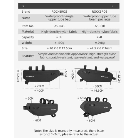 Rockbros AS-043 Fahrradtasche, was Festigkeit, Funktionalität und Design kombiniert. Dieses aus wasserdichte Material, ausgestattet mit Platz 3 Liter, ist diese Tasche ein idealer Begleiter jedes Fahrradabenteuers.