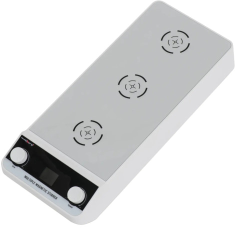Jeweils eine Platte für drei Glasbehälter von jeweils 1000 ml untermischt jeweils unterschiedliche Substanzen. Die Mischstange kann sich auch in geschlossenen Behältern drehen und ermöglicht es, die Flüssigkeit ohne direkten Kontakt mit der Substanz zu mischen. Die Grundplatte hat eine rutschfeste Beschichtung, die auch Kratzer und Korrosion verhindert.
