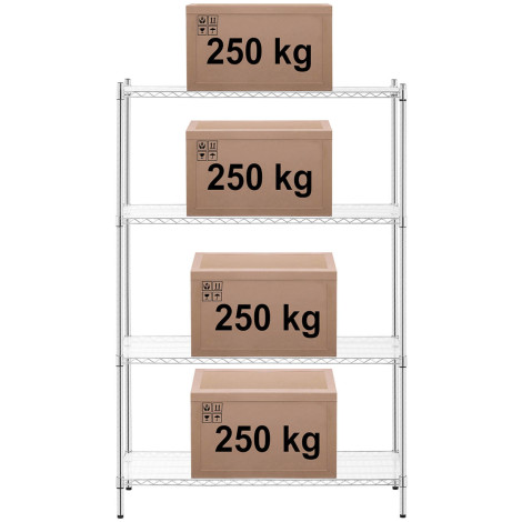 - - Haltbarkeit - Laden von bis zu 250 kg auf das Regal (insgesamt 1000 kg),