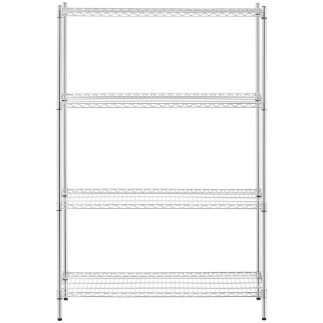 Chrom-Finish Es funktioniert in trockenen und beheizten Räumen. Offene Regale ermöglichen es Ihnen, das Rack auf jeder Seite zu erreichen. Die MEBLA-Baugruppe ist einfach und das notwendige Zubehör wird im Set geliefert.