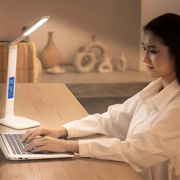 1029686Schreibtisch-LED-Lampe mit LCD-Anzeige Es ist eine moderne, energiesparende und funktionale Beleuchtung, die im Büro, ein Kinderzimmer, ein Kinderzimmer, ein Schlafzimmer oder ein Kabinett tätig ist.