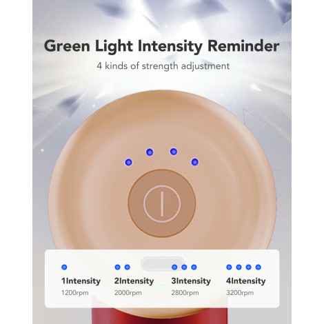 Dank 4 variablen Geschwindigkeiten von bis zu 3200 Turns Eine Minute ist äußerst effektiv beim Minderung von Schmerz- und Muskelstress. Lange Akkulaufzeit und fortschrittliche Geräuschreduzierungstechnologie machen es zu einem Produkt, das effizient als auch komfortabel ist. Leichtigkeit und starker bürstenloser Motor betonen zusätzlich seine hohe Qualität.