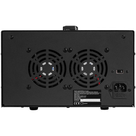 Parallele oder serielle Arbeit. Dank dieser können zwei unabhängige Eingänge oder eines mit einer Doppelspannung (60 V) oder Ausgangsstrom 10a erhalten werden. Anpassen der Parameter der Stromversorgung mittels Knöpfen. Sie werden mit angezeigt