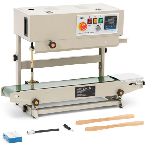 Η μηχανή συγκόλλησης έχει έναν ισχυρό και ανθεκτικό μεταφορέα ζώνης. Λειτουργεί σχεδόν ομαλά και μεταφέρει τα εμπορεύματα που ζυγίζουν έως 3 κιλά μέσω της μηχανής συγκόλλησης. Με αυτόν τον τρόπο δημιουργείται μια ισχυρή ραφή με πλάτος 6 - 12 mm. Το μηχάνημα είναι εύκολο στη χρήση με 2 κουμπιά και 3 κουμπιά για χειρισμό ανεμιστήρων, συγκόλληση εντός / απενεργοποίησης. Χρησιμοποιώντας εύχρηστα κουμπιά, μπορείτε επίσης να καθορίσετε την επιθυμητή ταχύτητα συγκόλλησης 0 - 12 m / min και θερμοκρασία 0 - 300deg C. Όλες οι ρυθμίσεις είναι σαφώς ορατές από το μπροστινό μέρος της συσκευής. Επιπλέον, μπορείτε εύκολα να ρυθμίσετε τη μηχανή συγκόλλησης στις ανάγκες σας. Το ύψος του μεταφορικού ιμάντα και η μηχανή αλλάζει χρησιμοποιώντας εύκολες τις βίδες σύσφιξης. Μπορείτε επίσης να ρυθμίσετε την πίεση στο πάχος της συγκολλημένης τσάντας.