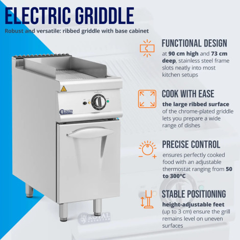 10013399Ηλεκτρική πλάκα σχάρας Royal Catering Θα εργαστεί σε επαγγελματική γαστρονομία. Σας επιτρέπει να σερβίρετε θρεπτικές σπεσιαλιτέ στη σχάρα όλο το χρόνο. Η σχάρα εντυπωσιάζει με χαμηλή εκπομπή καπνού και υγιεινής και πολύ σαφής τρόπος εργασίας. Η συσκευή εντυπωσιάζει με λειτουργικό σχεδιασμό και πρακτικές λειτουργίες. Διαστάσεις της σχάρας