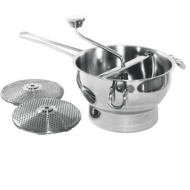 Αριθμός κατασκευαστή: 515501 Ένα κόσκινο για την κοπή των λαχανικών με ένα πυκνό πλέγμα και ένας ξύλινος αγωγός θα λειτουργήσει καλά για την προετοιμασία μιας σούπας κρέμας ή από πάτημα ντομάτας. Από ανοξείδωτο χάλυβα 18/10. Έχει μια λαβή καλωδίων που σας επιτρέπει να κρεμάσετε το εξάρτημα σε ένα εύκολα προσβάσιμο τόπο έτσι ώστε να το έχετε πάντα στο χέρι. Οι παράμετροι: