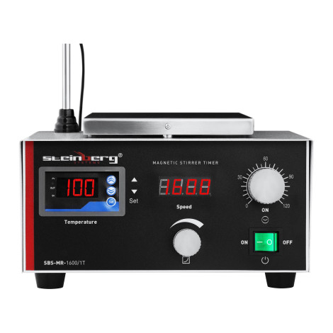 Αριθμός κατασκευαστή: 10030255 Μαγνητικός αναδευτήρας SBS-MR-1600 / 1T Είναι εξοπλισμένο με πλατφόρμα o Διαστάσεις 161 x 161 mmο οποίος θα ταιριάζει σε μια φιάλη περίπου Ικανότητα έως 5 L. Ο ενσωματωμένος θερμαντήρας είναι σε θέση να ζεσταθεί το υγρό Μέχρι 100deg C θερμοκρασία. Η ρύθμιση της σωστής τιμής πραγματοποιείται χρησιμοποιώντας Ψηφιακή οθόνηκαι ο έλεγχος σας επιτρέπει να επισυνάψετε αισθητήρας θερμοκρασίας. Χάρη στη δυνατότητα επίτευξης Μέγιστη ταχύτητα 1600 σ.α.λ., ο αναδευτήρας θα λειτουργήσει όταν εργάζεται σε διαφορετικές ουσίες. Επιπλέον, η συσκευή έχει Χρονοδιακόπτης, ο οποίος μπορεί να ρυθμιστεί στην περιοχή από 0 έως 120 λεπτά. Τοποθετημένο Rubber feet absorb vibrations Κατασκευάζεται κατά τη διάρκεια της ανάμειξης και εξασφαλίζει τη σταθερότητα του αναδευτήρα. Product features: