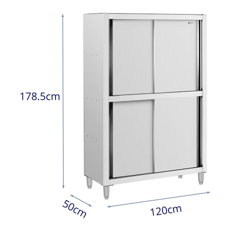Κωδικός κατασκευαστή: 10012595 Ντουλάπα μάρκας Royal Catering Θα λειτουργήσει για επαγγελματική χρήση στη γαστρονομία. Η Mebel έχει Διαστάσεις 120 x 50 x 180 cm. Ήταν κατασκευασμένο από υψηλής ποιότητας Από ανοξείδωτο χάλυβα με πάχος 0,8 mm, ανθεκτικό σε ζημιές, διάβρωση, εύκολο να καθαριστεί και να απολυμάνετε. Μέσα υπάρχουν 4 ράφια, κάθε χωρητικότητα φορτίου 30 κιλά, η συνολική ικανότητα ανύψωσης είναι 120 κιλά. Τέσσερις συρόμενη πόρτα Προστατεύει το περιεχόμενο από το φως και τη σκόνη και επίσης παίρνει λιγότερο χώρο από παραδοσιακές πόρτες που ανοίγουν έξω. Η πόρτα κινείται σε σταθερά ρολά σε ράγες υψηλής ποιότητας, γεγονός που εξασφαλίζει απαλό άνοιγμα και κλείσιμο. Το σετ περιλαμβάνει εξαρτήματα συναρμολόγησης. Product features: