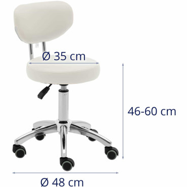 από 46 έως 60 cm Με ελατήριο αερίου. Το επικαλυμμένο κάθισμα με διαστάσεις Ø35 επιτρέπει ένα βολικό κάθισμα ακόμη και για μεγάλο χρονικό διάστημα. Η πλάτη, η οποία είναι ταπετσαρισμένη, παρέχει χαλάρωση. Η καρέκλα έχει μια σταθερή κατασκευή που μπορεί εύκολα να αυξηθεί