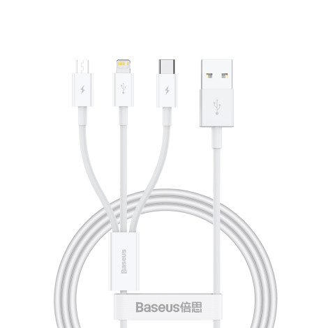 - 3in1 καλώδιο Superior Σειρά USB-A - USB-C / IPHONE LIGHT / MICRO USB 3.5A 0.5m - λευκό