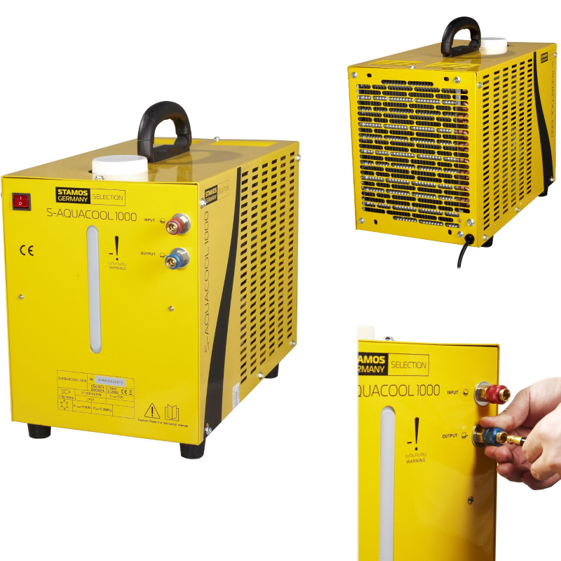 Όνομα κατασκευαστή: S-Aquacool 1000 Η κλήση πάνω από 150 Α, ειδικά σε μακρύτερους κύκλους εργασίας, απαιτεί μια κατάλληλη ψύξη της λαβής. Πολλές συγκολλητές, αν και είναι εξοπλισμένες με κατάλληλη σύνδεση, δεν διαθέτει κατάλληλο ψυγείο στο σετ, το οποίο δεν μπορεί να χρησιμοποιήσει ολόκληρο το δυναμικό της συσκευής. Το ψυγείο νερού του γερμανικού μάρκα STamos Selection δεν σας επιτρέπει μόνο να επιτύχετε πλήρη χωρητικότητα μηχανών συγκόλλησης, αλλά και να παρατείνει τη διάρκεια της ζωής του. Ένα λειτουργικό κύκλωμα νερού και η αποτελεσματική διάχυση θερμότητας από τη λαβή έχει επιτευχθεί χρησιμοποιώντας μια αποτελεσματική αντλία, ανεμιστήρα, χαλκό και ψυγείο αλουμινίου στη συσκευή. Χαρακτηριστικά και λειτουργίες: