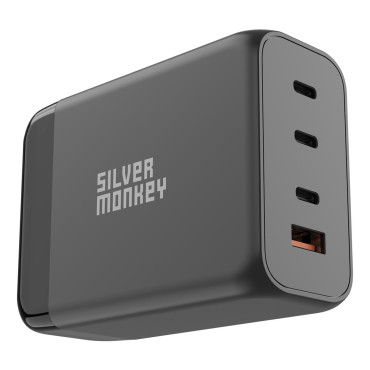 1025252Charger Gan Silver Monkey SM155 It has small sizes while maintaining high efficiency. It's not only light, but also extremely compact - weighs only 325 g! You can easily take it with you, regardless of whether you are going to the office or on holiday. Having the possibility of charging up to four devices at the same time, it will be a great companion both at home and at work. Automatic adjusting the power to the connected devices and complies with Quick Charge and Power Delivery protocols. This means that your devices will be loaded faster than ever. A short circuit and overvoltage protection ensures the safety of both loaded devices and users.