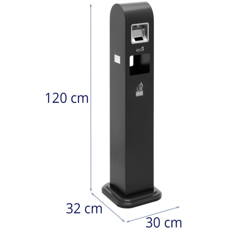 E stainless steel, it is resistant to rust and weather conditions. Ashtray can also be set inside buildings. Its total dimensions are