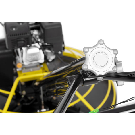 Ignition lever and a cage protecting the shovel, increasing stability and reducing vibrations. The engine strap is completely enclosed. Adjustable handles increase work comfort.