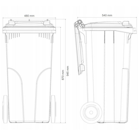 Manufacturer's code: 0004-5 Certified Container, municipal waste municipal waste made by the European leader, Austrian company Europlast. Trash can It was made of high quality ecological materials. Find your tasks in the most difficult conditions during everyday intensive operation. The most important advantages: - UV-resistant - resistant to low and high temperatures (not intended for storing hot ash) - The smooth surface prevents waste from gluing. - resistant to weather conditions. - produced from materials suitable for re-processing - does not contain any cadmium - aesthetic look - Wheels from a full tire, embedded on a steel axis Specification Weight (kg) - 9 Capacity (L) - 120 Sizes (mm) - 480 x 540 x 950 Color - brown A place to mount a chip transponder. Hook / edge Emptying with its construction comb and rotary, gantry or hook The loading mechanism of vehicles designed for waste collection. Certificates: - DIN EN 840-1, EN 840-5, EN 840-6 - RAL-GZ 951/1 - PZH ATST Included: - Waste bucket 120l Brown - Wheels on a steel axis