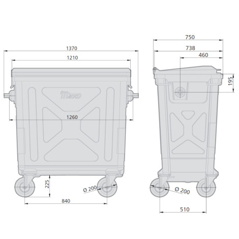 Manufacturer's code: 1106h2vp High quality container Waste container and ashes made of thick steel sheet resistant to external atmospheric factors. The 660L container is adapted to municipal and industrial waste in this For the collection of hot ash. A lasting and additionally reinforced design will provide use for many years. Low own weight, four rotatable wheels and the dimensions of the container facilitate manipulation in tight places and allow Transfer through the entrance door with an ordinary 80 cm wide. Features and functions: - Universal durable construction - additional handles to help you move the container - 4 large rotary and durable wheels including 2 with brakes - The width of the container allows the passage by the standard door to 80cm - adapted to handle through the garbage trucks - Has hole in the bottom with a water drain plug - produced in Europe Technical parameters: - Material: Hot galvanized steel sheet - Thickness Sheet metal: container - 1,25mm / cover - 1.5 mm - Capacity: 660 l - Load capacity: 265 kg - Container weight: 80 kg - External dimensions: (SZ x dep x he): 1370 x 770 x 1300 mm - wheel diameter: 200 mm - Number of brakes on wheels: 2 - EU containers: EN 840-2 Included: - Metal container for waste and 660L ash