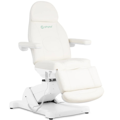 10040731Physa's beauty chair Provides maximum relaxation in a lying or sitting position. It allows you to conveniently carry out cosmetic treatments. It is also suitable for use in styling, tattoo and piercing studies, in spa wellness facilities and as a massage table. It has numerous functions. Motors allow easy operation using a wired (3 m) manual control. You choose different height settings in the range 600 - 900 mm. In addition, you can customize the backrest angles (0-90deg), armrests (0-180deg) and footrest (0-90deg) to the procedure and client. Soft upholstery in combination with the highest-class waterproof and oil-resistant coating of synthetic leather, which can be easily cleaned, provides high comfort and impeccable hygiene. The chair also has a function of lying. The beauty bed has a well-thought-out design, the base of ø480 mm made of metal painted powder and high quality materials. The maximum lifting capacity is 150 kg. The equipment impresses with extraordinary durability and a simple and classic look.