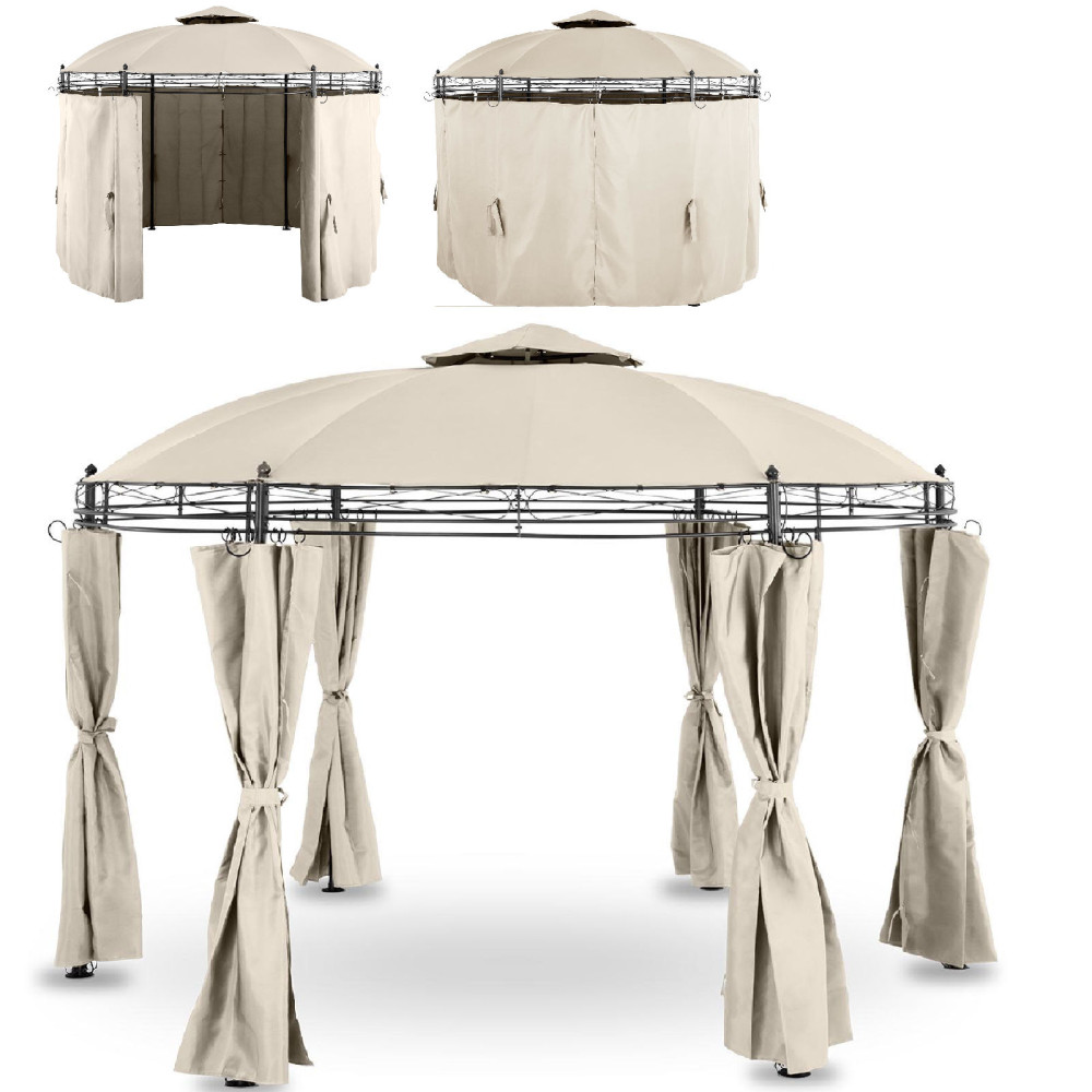 Product features: - - stylish, round gazebo with a cream roof and curtains,