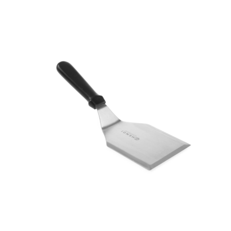 Hendi 855652Angular spatula Wide made of high quality stainless steel, resistant to mechanical damage. The handle of the spatula has a handle from black plastic, giving comfort of use. Due to its dimensions and angle - it will ideally check for turning steaks, hamburgers. The product is adapted for washing in a dishwasher.