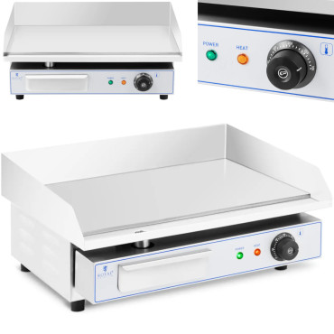 10012370Brand grill plate Royal Catering It allows you to prepare juicy steaks and burgers, fish, omelettes, tortillas or vegetables. The device impresses a low level of smoke and hygienic release and a very clean way of work. It is ideal for use in large kitchens - from restaurants and bars with snacks after food trucks or parties with catering. A fully automatic thermostat ensures constant temperature. Thanks to the efficient heating element