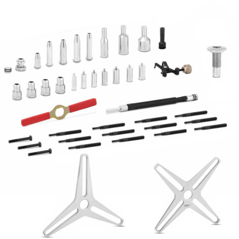 Sac (sublanic) with 3 and 4 holes. Fits multiple models of VW brand cars, Audi, BMW, Mercedes, Volvo, Opel, Vauxhall, Renault. The tool allows pre-tension, alignment and reset. The set includes a suitcase that facilitates transport.