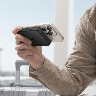powerbankiem Baseus Airpow II 10000mAh qi2. This compact, efficient and functional Powerbank allows you to quickly load your devices wirelessly and wire, with the maximum capacity of 22.5W. Equipped with QI2 certification, it offers 15W wireless charging in the MagsFe standard, providing stable and quick renewal energy. Thanks to the light and ergonomic structure, you can easily take it on a journey and its capacity 10000mAh will make your devices charged throughout the day. Load two devices wary at the same time and enjoy full comfort.