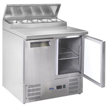 without GN containers Cabinet casing made of high-quality stainless steel. A static cooling was used in the refrigeration table. A supported by an internal fan from