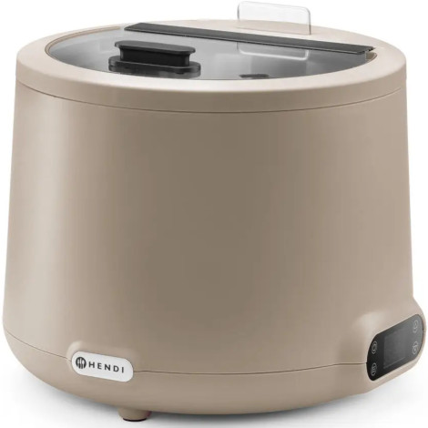 capacity 8 L. It was made of AISI 304 stainless steel, it is easy to clean. Tempered glass cover holds an isolated handle, cutting on a dipper and an aluminum hinge. Special