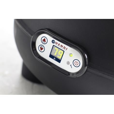 Electric soup boiler Hendi Save Energy 8L with thermal insulation reducing energy consumption and maintaining the low temperature of the outer casing. The water tank is made of aluminum (for better heat exchange), while The puzzle into the soup is made of stainless steel. An additional advantage of the device is a cover made of hard transparent polycarbonate (the cover has an isolated handle and a hyperwood cutting). Product features: - casing made of polypropylene, - water tank made of aluminum for better heat exchange, - puzzle for soup made of 18/8 stainless steel, - a removable cover made of hard, transparent polycarbonate, - cover with an isolated handle and a cut on a dipper, - overheating protection - with alarm informing about too low water level, - an aluminum water container for efficient heat flow, - non-slip rubber legs, - temperature regulation from 65DEG to 95DEG C, Co 1 DEG C, - green control lamp signaling action, - a digital control panel with a display showing alternately the set temperature and the real temperature of the soup, - Overheating protection, the red lamp and audible alarm will turn on when the water level in the container is too low. - aluminum water container, - polypropylene housing, - a label holder on the lid, - Ring - Safe removal of a container for a soup, - lid with cut-out on a dipper. Dimensions: - height: 300 mm - diameter: 370 mm - Capacity: 8 L - Tension: 230 V - Power: 450 W Included: - EN statement