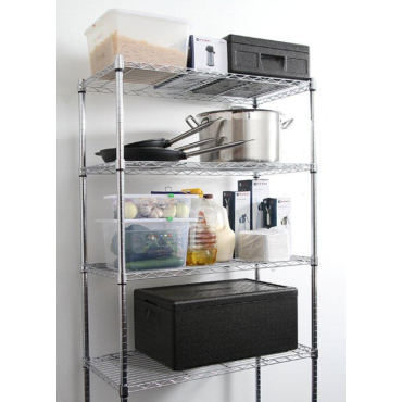 Manufacturer's name: Warehouse bookcase - Code 812204 Professional storage bookcase Hendi Folded with adjustable openwork shelves is basic equipment for all kinds of catering premises, ie restaurants, school and pre-school kitchens, wedding halls, banquet rooms, bar, shops and storage rooms. Warehouse shelf made of chromed steel having 5 adjustable openwork shelves. The maximum load on one shelf is 80 kg. Easy assembly and adjustable shelves make the bookcase very universal and convenient to use. The legs have the ability to adjust height. Volley design and instant without a screw assembly are the unquestionable advantages of the rack. Features and functions: - construction for self-assembly - made of chrome steel - 5 adjustable openwork shelves - Maximum load on one shelf 80 kg - legs with height adjustment - Fast and easy assembly. Disassembly - High quality Rack dimensions: - Width: 910 mm - Depth: 455 mm - height: 1830 mm - Weight: 12.4 kg