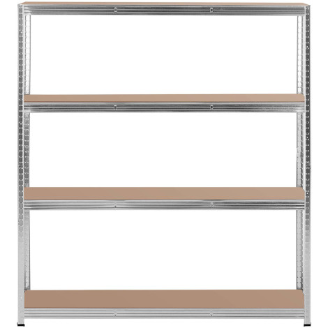 4 Seamless shelves with adjustable height They allow you to place a variety of things. Each shelf has an load capacity of 150 kg. The posts were made of galvanized steel, are resistant to rust and require little maintenance.
